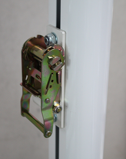 Diseñados para anclar al suelo mediante botes metálicos*(incluidos) empotrados en zapata de hormigón. Incluye carraca