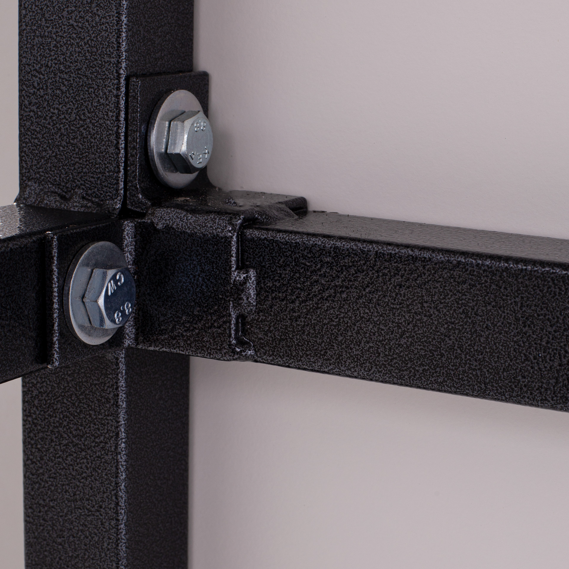 Mesa de anotadores basic (panel superior y frontal , no laterales) realizada con estructura de acero al carbono con recubrimiento lacado en polvo, acabado negro/plata martele, con paneles fenólicos de 8 mm en color blanco.