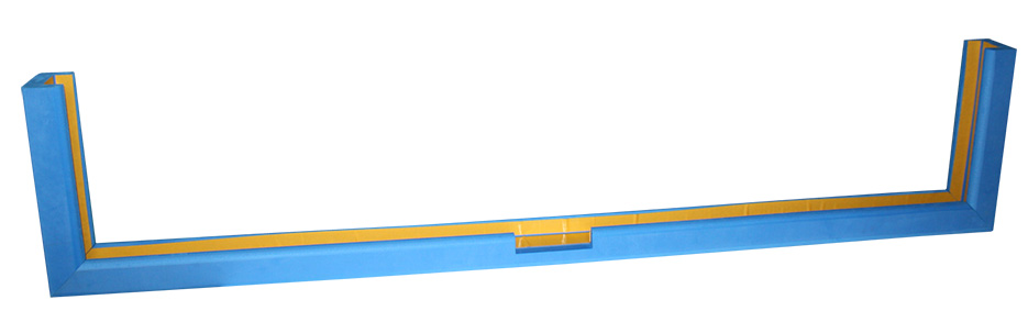 FABRICACIÓN NACIONAL. ARTICULO COMPUESTO POR 1 UNIDAD. Producto formado por 3 piezas de espuma polietileno reticulado de celula cerrada de densidad 45 kg color azul. Lleva incluido cinta de doble cara para facilitar su colocacion, recomendable uso de masilla de poliuretano para su mayor fijacion a la estructura de la canasta. Seccion exterior de 10 x 7 cm y seccion del hueco interior de 6 x 3,5 cm